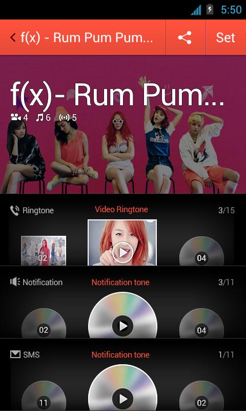 ▶ Lancez Dodop Pop et sélectionnez le menu «Package», ou appuyez sur l'icône de l'application Package téléchargée et définissez la sonnerie vidéo et le son SMS / Notification!