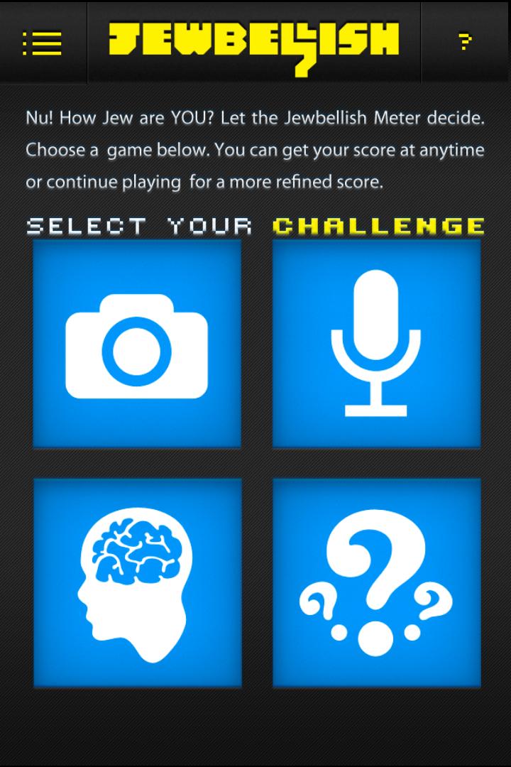 Alors, comment êtes-vous juif? Soyez testé! Pour une durée limitée, obtenez cette application gratuitement. L'application a 4 façons de générer votre score juif.