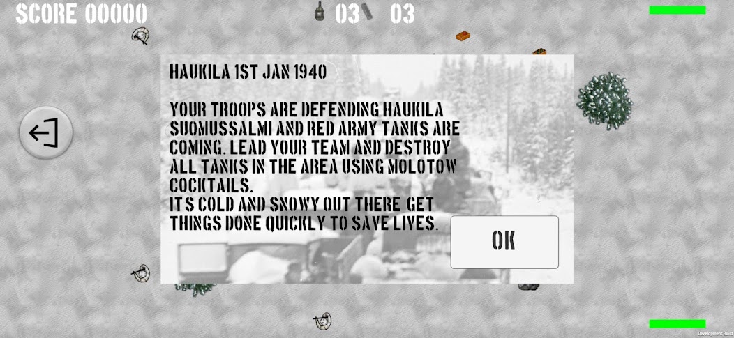 Dirigez votre équipe et détruisez tous les chars de l'Armée rouge dans la région de Haukila à l'aide de cocktails Molotov.