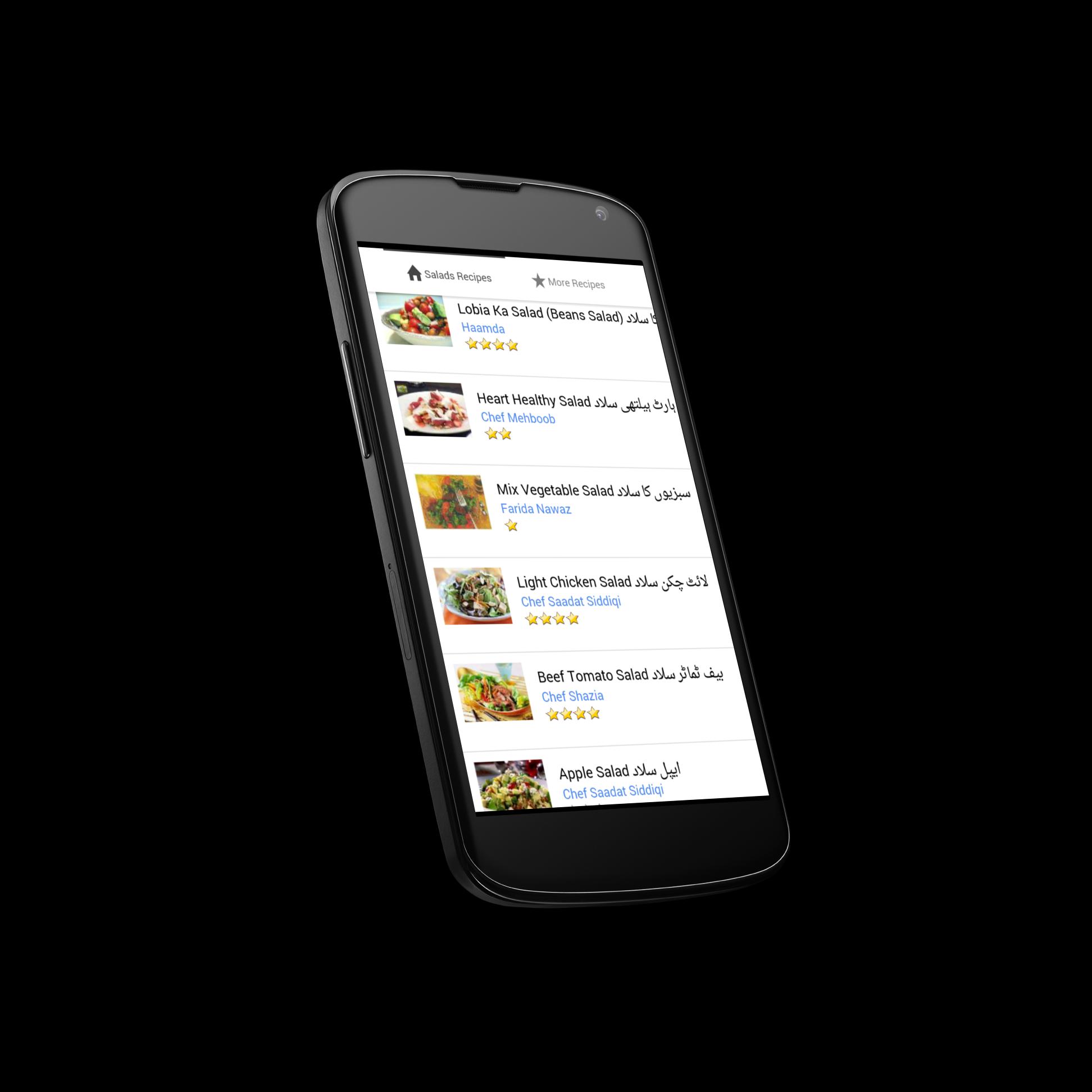 Les Salads Recipes in Urdu khana contiennent plus de 50 salades célèbres, habillant les recettes en langue ourdou.