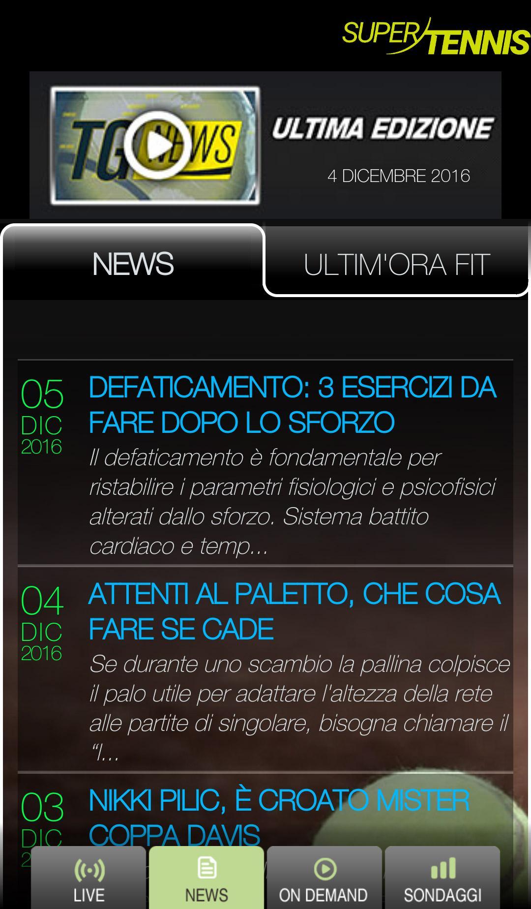 - News: Regardez la dernière édition de TG News, The News on SuperTennis World Tennis, lisez les dernières nouvelles SuperTennis et les «dernières» de la Fédération italienne de tennis.