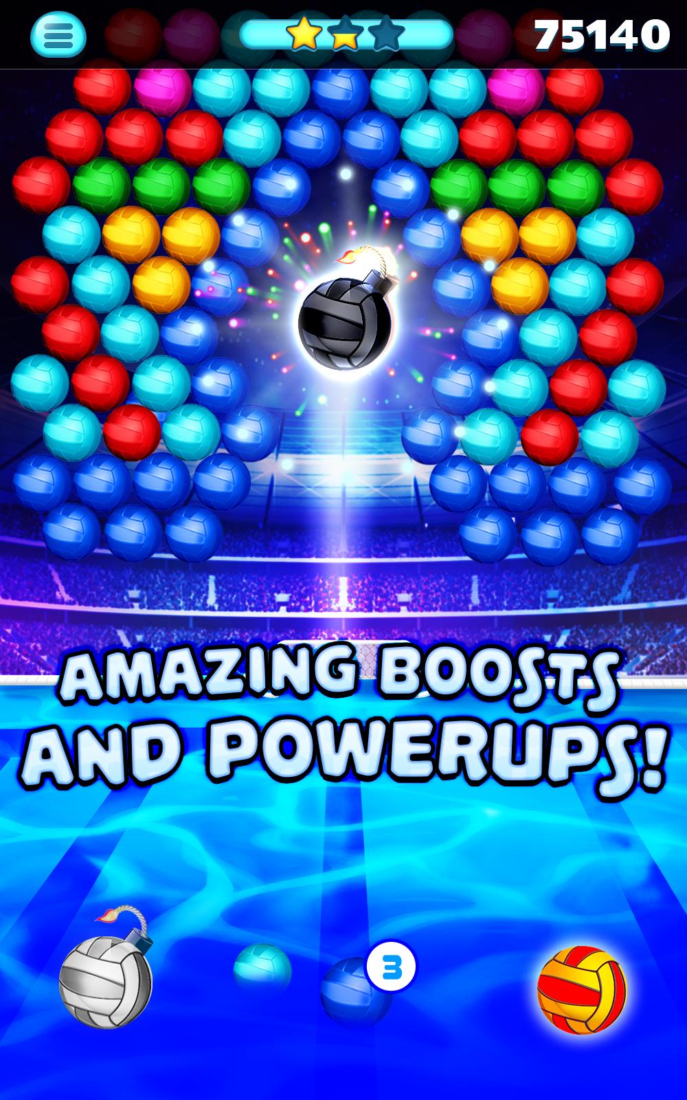 Take aim and strike the ball to match at least three colors and burst groups of Water Polo Bubble s.