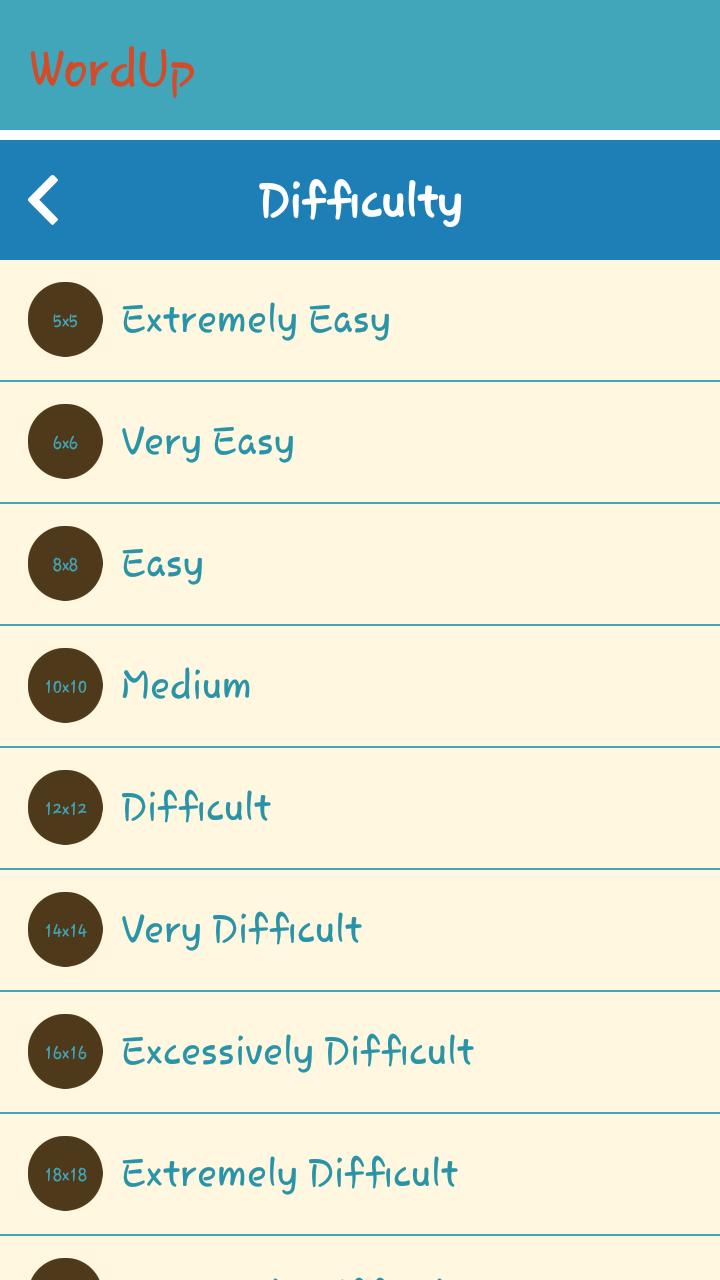 WordUp a différentes catégories à jouer et plusieurs modes et styles de jeu, ce jeu vous tiendra à la recherche de mots pendant des heures! Trouvez simplement la catégorie que vous aimez le plus et gardez les yeux ouverts pour les mots dans toutes les directions!