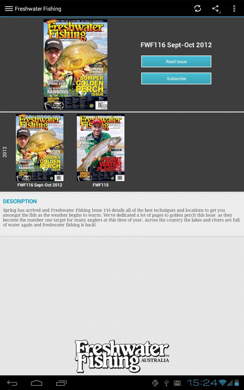 Freshwater Fishing Australia magazine was first published over 24 years ago and is an institution for many of our country’s freshwater anglers. It is one of the longest running fishing magazines in the country. For two decades, the country’s leading fishing journalists have been providing the best information for our anglers. The quality of the publication has resulted in many local anglers retaining every copy of the magazine ever published. Freshwater Fishing continues to hold the trophy of the country’s most popular freshwater only publication.