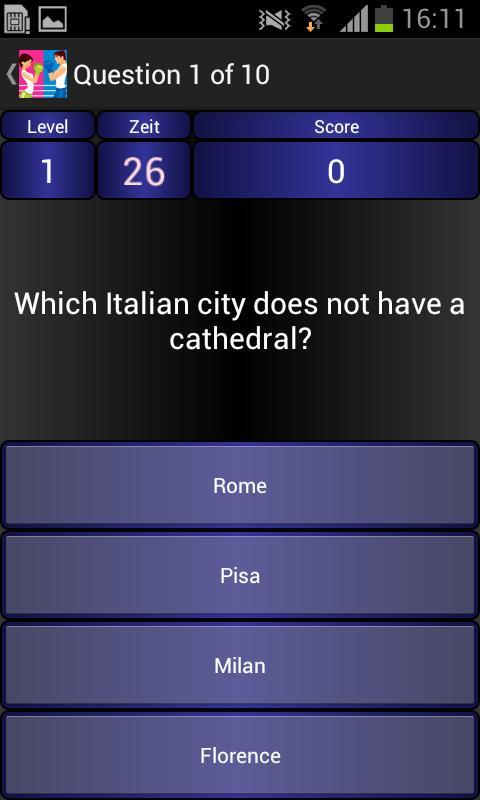 When you start this app, you enter your gender and are then posed questions in 5 levels of difficulty.