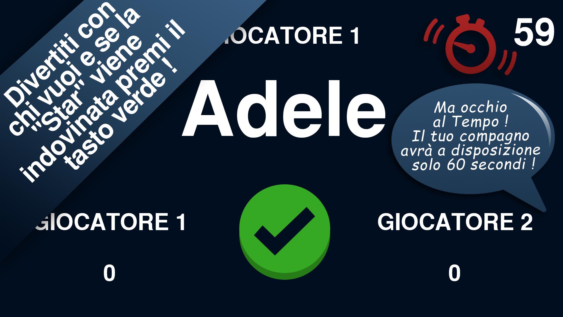 "Guess The Star" is a party-game with the intent to guess as many famous people with the help of the other participants, who will give you tips, advice and even singing or mimes the name to find out, do not overdo it! Eliminating the need to explicit references to the word to guess. But look at the time! You'll have only 60 seconds to figure out who it is.