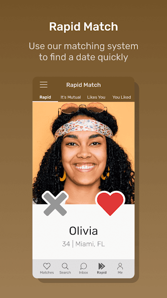 - Rapid Match: Are you in a rush and only want to look at photos? Decide which singles you like here instantly by swiping right or left