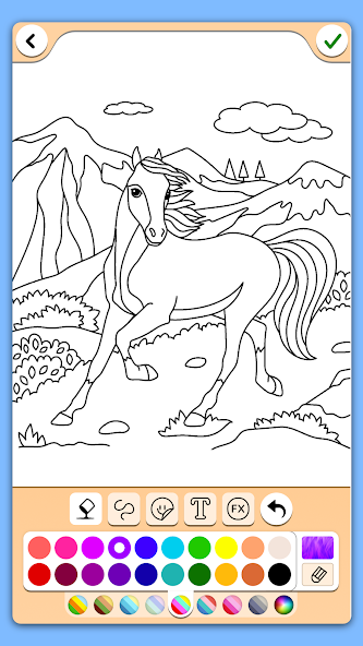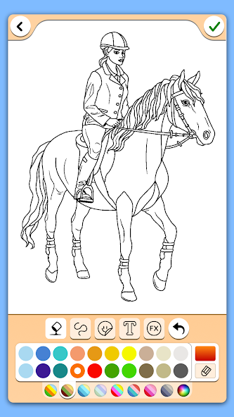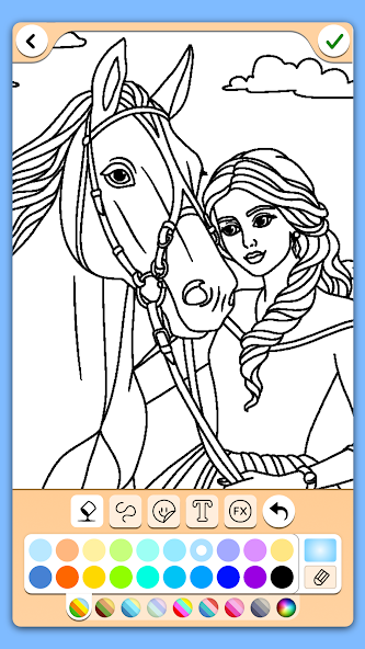 Free coloring pages game from ColorMaster. This drawing and coloring game offers a coloring book with many designs of horses. Also you get lots of different tools for creating your artwork, like paint bucket, pencils, stickers and text.