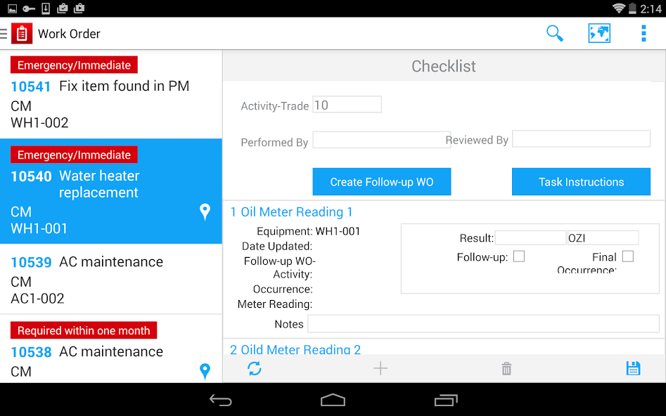 "HxGN EAM Mobile Connected" performs maintenance work in connected mode