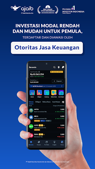 Ajaib - Investor #1 Investor Indonesia untuk berinvestasi dalam saham, reksadana, dan obligasi FR, yang digunakan oleh lebih dari 3 juta ++ investor di Indonesia. Investasikan dengan mudah, praktis, dan 100% proses online! Cocok untuk pemula dan profesional. Aman Aplikasi Investasi, Berlisensi dan Diawasi oleh Otoritas Jasa Keuangan (OJK).