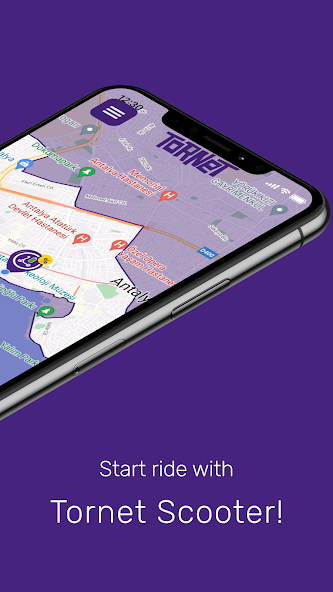 halaman depan aplikasi perjalanan perjalanan Tornet Scooter