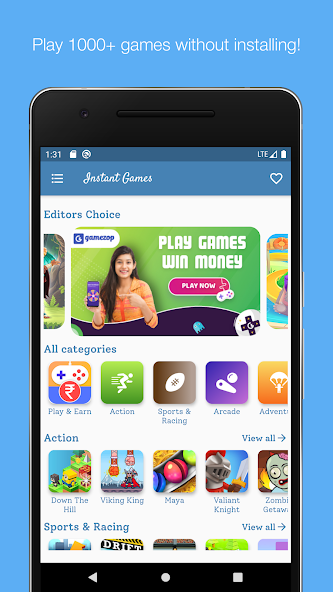 Instant Games is the one stop for all your gaming instincts! Ride along with 1000+ games on your phone, anytime, anywhere!
