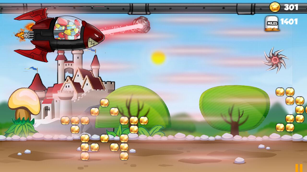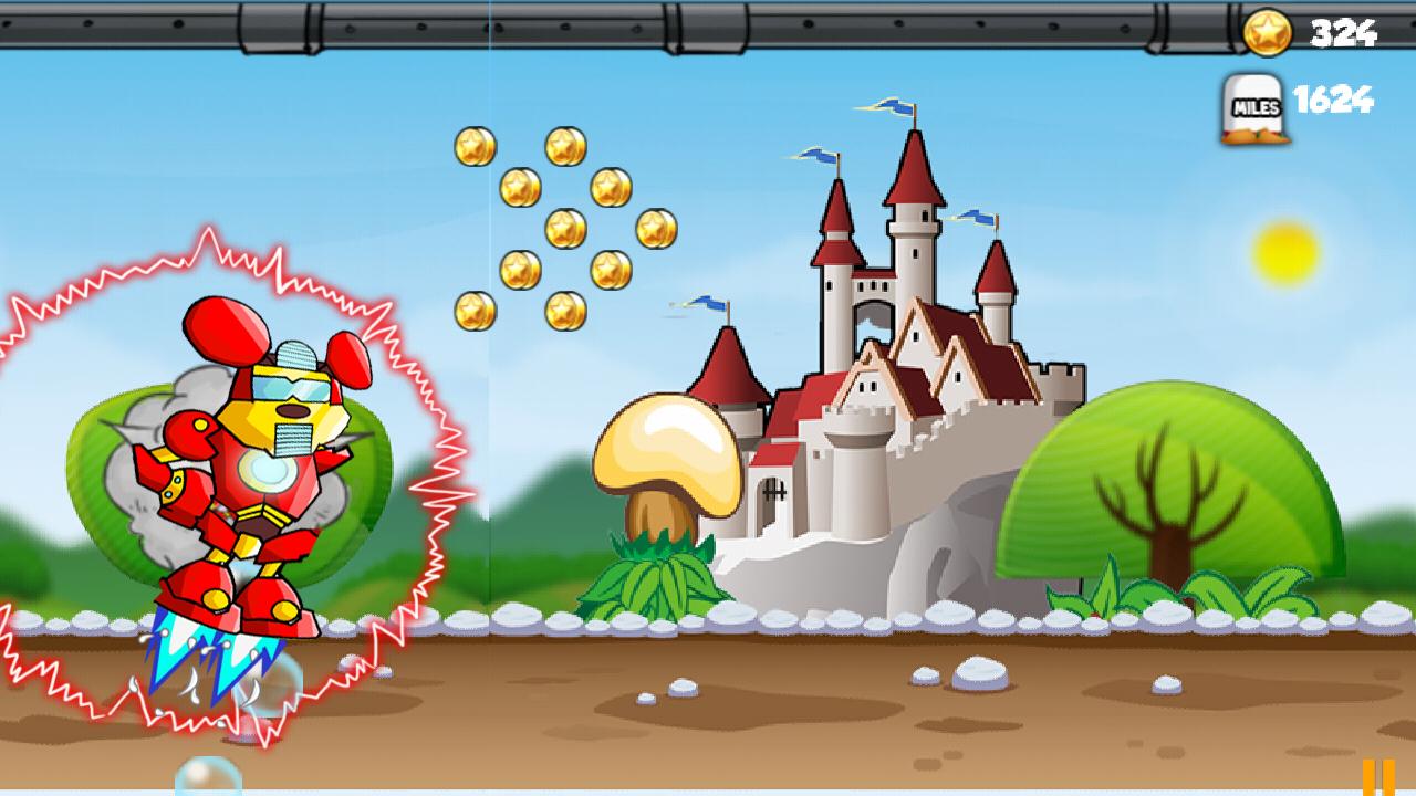 Fly around this adventure castel city and get as many robot iron coins as you can.