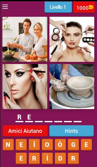 各レベルは4つの画像で構成されています。 4つの画像には、共通点が1つしかありません。 4つの画像すべてで共通の単語を見つけます。