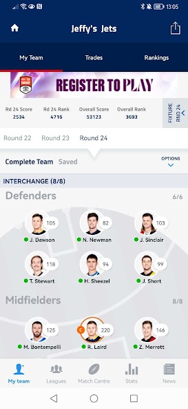 公式AFL FANTASYアプリは、2024年シーズンに更新されます!すべてのユーザーに無料で、このアプリを使用すると、外出中にAFL FANTASYをプレイできます。