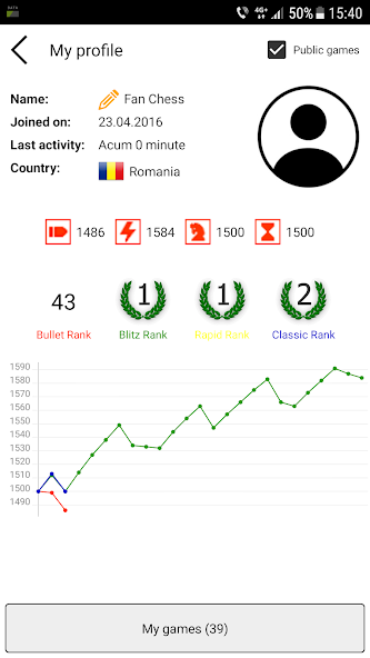 *プレイ - 世界中またはチェスエンジンに対して、友達や他のチェスプレイヤーとチェスをプレイします。また、チェスの評価を受けて進捗を追跡し、リーダーボードでできるだけ高い名前を見るために競争することができます。
