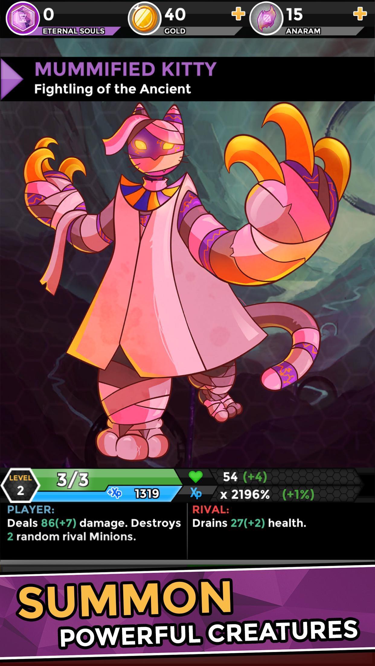 クリーチャーを集め、それらを平準化し、6つの異なる派factから30のユニークな氏族を完成させます。リソースを集めて新しいクリーチャーを召喚するか、レーダーの特別なポイントを探して直接産みます。ロックを解除する各キャラクターはあなたの力を高め、世界の支配に一歩近づきます。