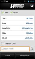 Homan Autoアプリは、WebサイトのすべてのパワーをAndroid電話にもたらします。完全な在庫を検索し、インターネットクーポンを取得し、オンラインでサービスをスケジュールし、運転指示を取得します。