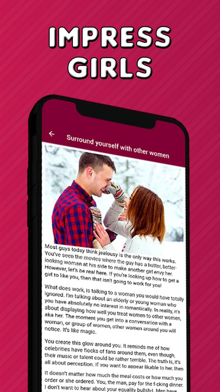 私たちのアプリは無料です、あなたはデート、いちゃつく、チャット、誘惑のヒントを学ぶことに驚くでしょう、日付の計画方法、これまでの最高の場所、あなたの日付の興味を維持する方法、専門家のヒント、誘惑のアドバイス、巧妙な会話...