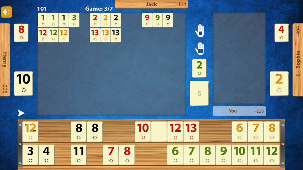 ゲームの開始時に、各プレイヤーには20タイルの手があります。オブジェクトは、タイルを描画して廃棄することで、同じ数のタイルのセットを形成し、同じ色の連続したタイルの実行です。タイルのこれらのグループは、手からテーブルに移動します。さらに、テーブル上の既存のシリーズにタイルを1つずつ追加することができます。タイルが少ないほど、最終的にはより良いものになります。