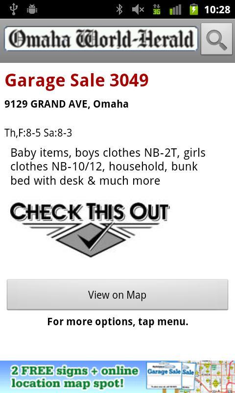 ガレージの販売のためのルートを狩り、マッピングするのは時間がかかり、イライラする可能性があります。時代遅れの情報、またはローカルリスティングはありません。しかし、オマハワールドヘラルドのガレージセールスアプリケーションを使用すると、外出先で現在のローカル広告を検索することで時間を節約できます。お近くのガレージセールを見つけるための最も簡単で信頼できる方法です。