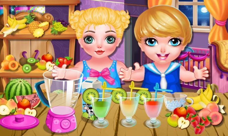 - 美しい王女と彼女の素敵な赤ちゃんのためにおいしいジュースを作ってください。