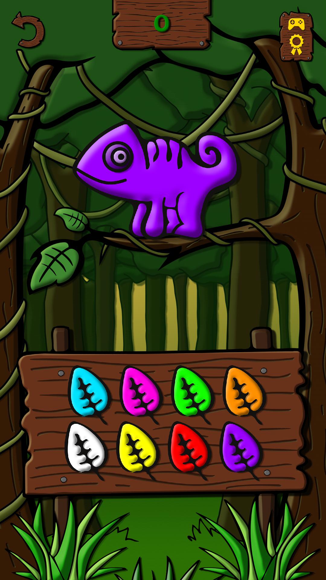 눈앞에서 Cheeky Chameleon 색상을 바꾸고 잎 버튼을 사용하여 시퀀스를 반복하십시오. 그러나 게임이 진행됨에 따라 카멜레온은 leeekier를 얻고 한 번에 기억할 더 많은 색상을 줄 것입니다.
