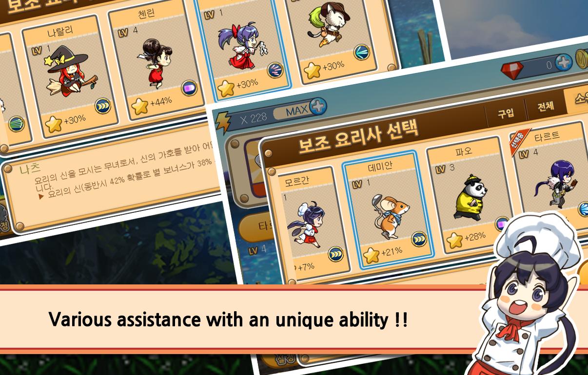 요리를 만들고, 주문을 완료하고, 캐릭터를 강화하십시오
