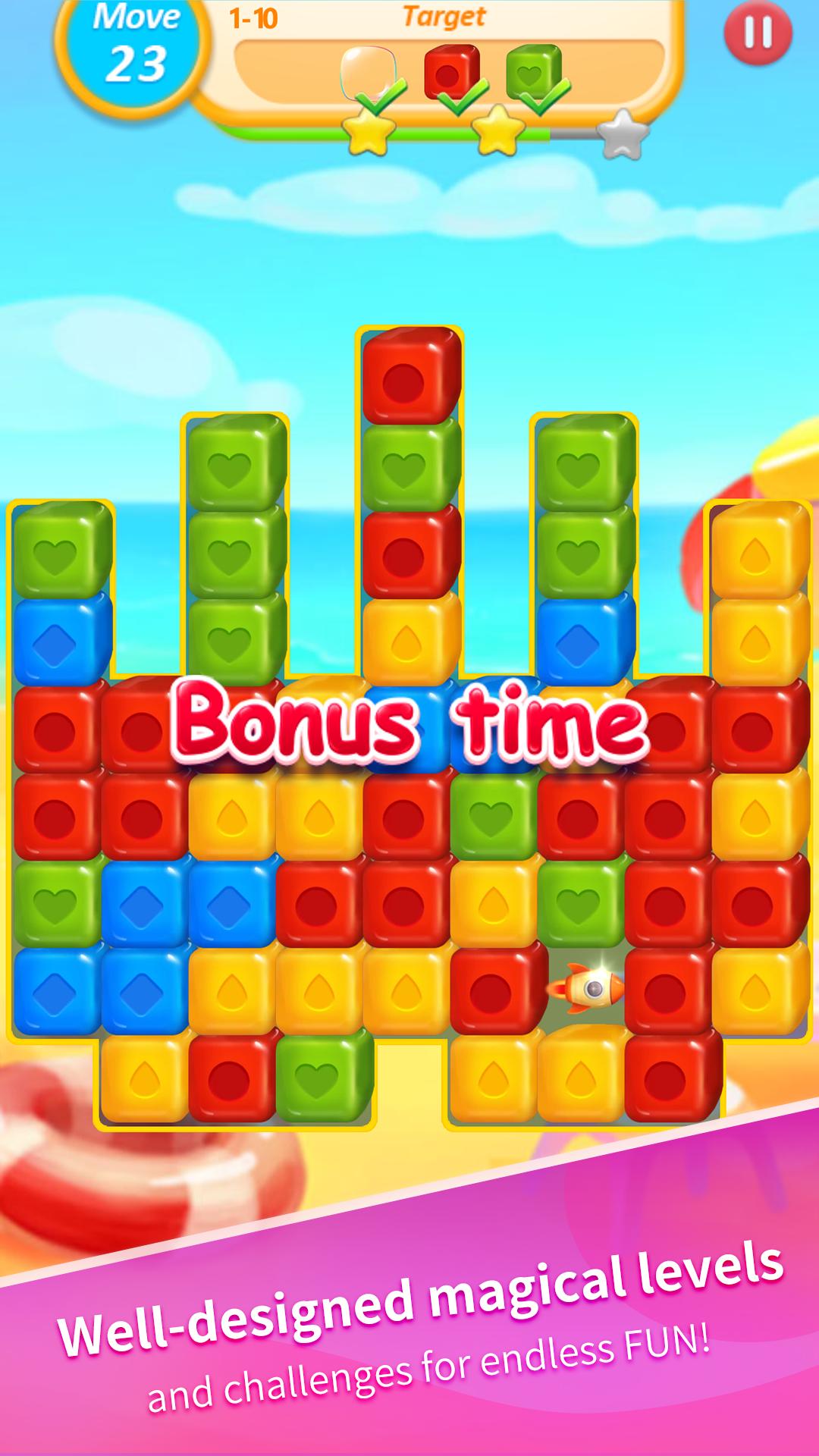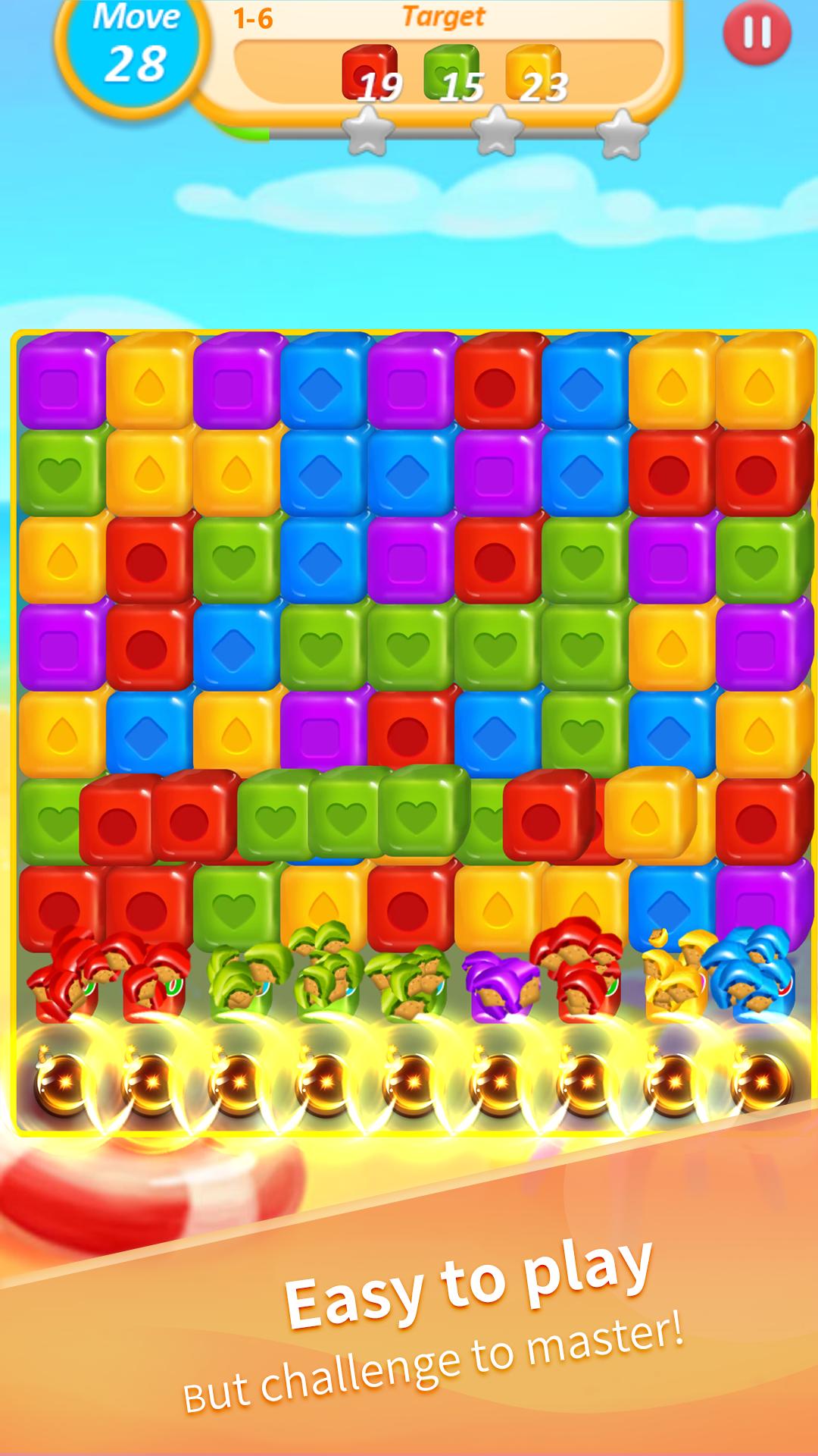 게임의 목표는 블록을 폭파하고 레벨 퍼즐을 풀는 것입니다. 블록이 많을수록 더 많은 부스터가 더 나은 부스터를 터 뜨리고 퍼즐을 풀고 모든 큐브를 폭파하는 데 도움이됩니다.