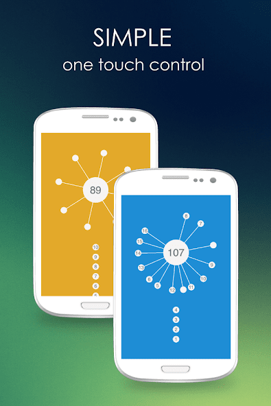 • 화면을 탭하여 큰 회전 원으로 날아가는 점을 보냅니다.