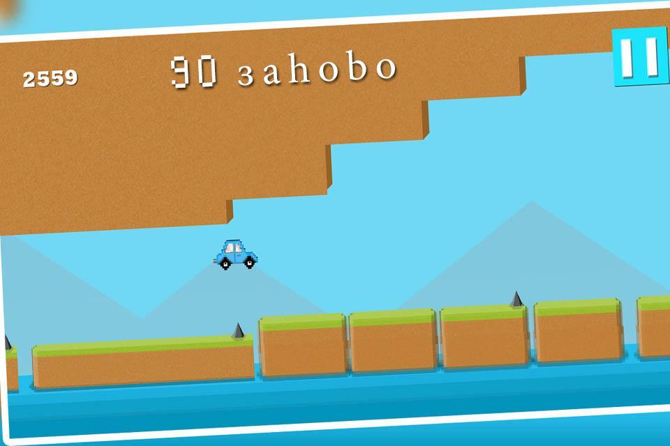 8 비트 레트로 자동차 경주 게임이 돌아 왔습니다 !! 플랫폼과 스파이크 위로 점프 자동차로 점프하십시오. 충돌하지 마십시오.