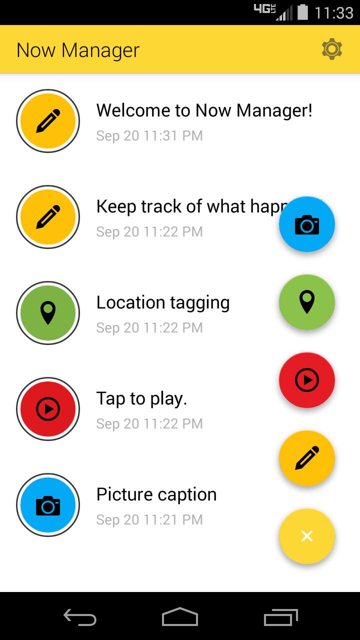 Now Manager 사용하면 일이 일어나는 일을 추적 할 수 있습니다. 로그 이벤트, 오디오 녹음, 사진 및 위치.