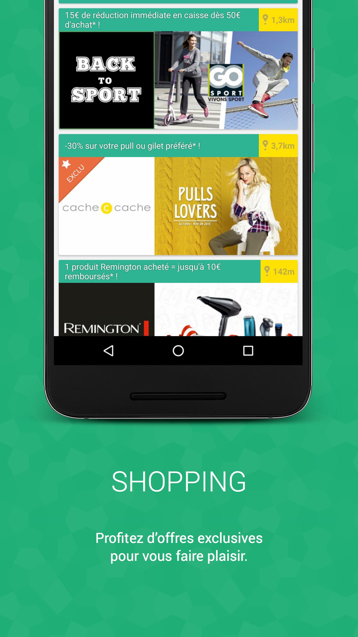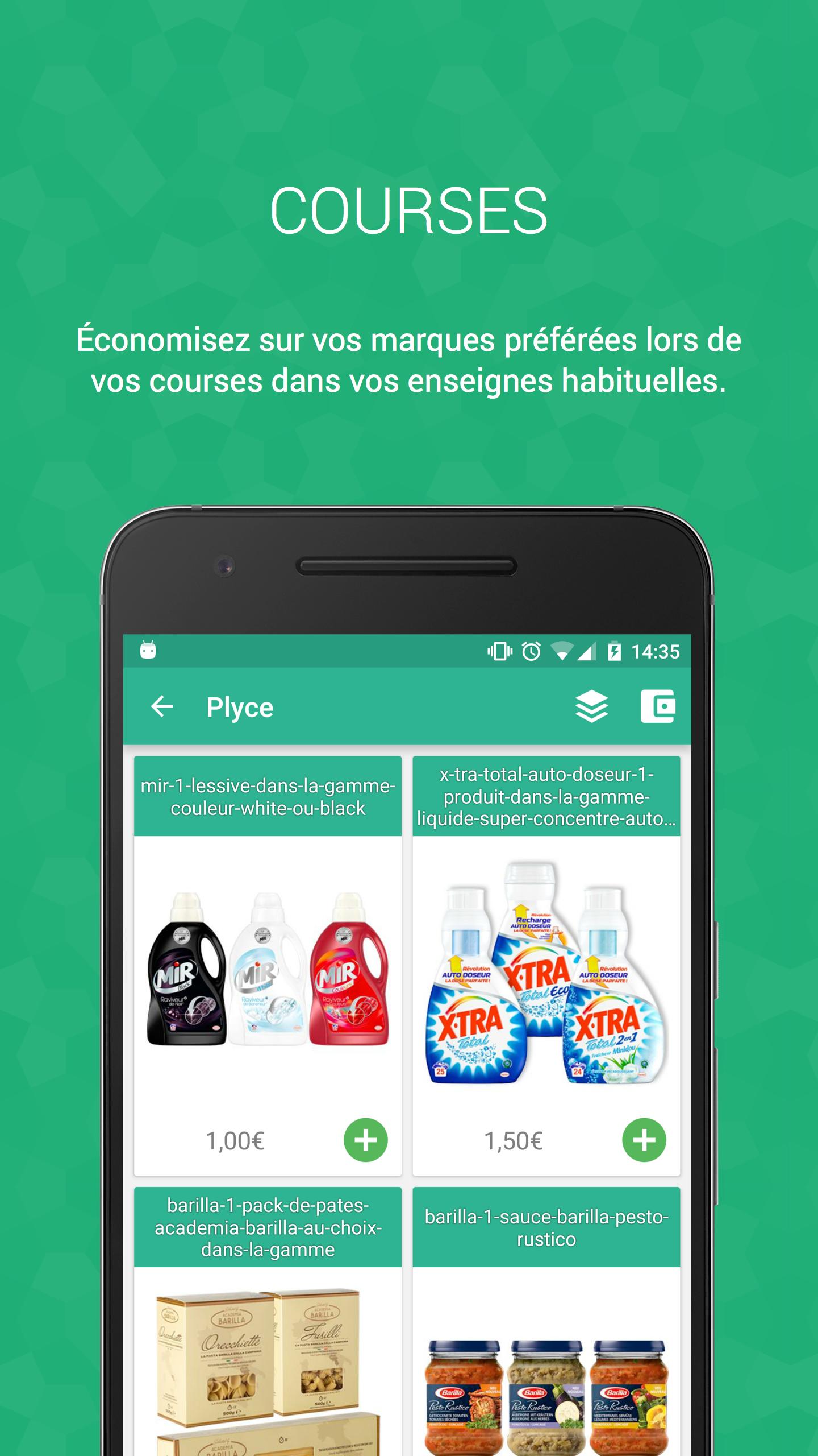 스마트 폰을 몇 번 클릭하면 주변의 상점을 찾고, 즉시 사용할 수있는 축소 쿠폰을 복구하고, 매장에서 Destocked 제품을 예약하고 모든 충성도 카드에 액세스 할 수 있습니다. 그리고 당신이 당신의 움직임을 절약 할 수 있도록 Plyce 주변 서비스 스테이션의 공식 가솔린 가격을 게시합니다.