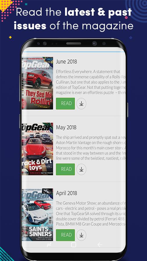 Top Gear South Africa : 세계에서 가장 재미있는 자동차 잡지는 자동차와 자동차에 대한 열정을 가진 모든 사람에게 엔터테인먼트, 흥분 및 정보를 제공합니다. 그것은 Top Gear TV의 자동차 애호가와 팬들에게 호소합니다.