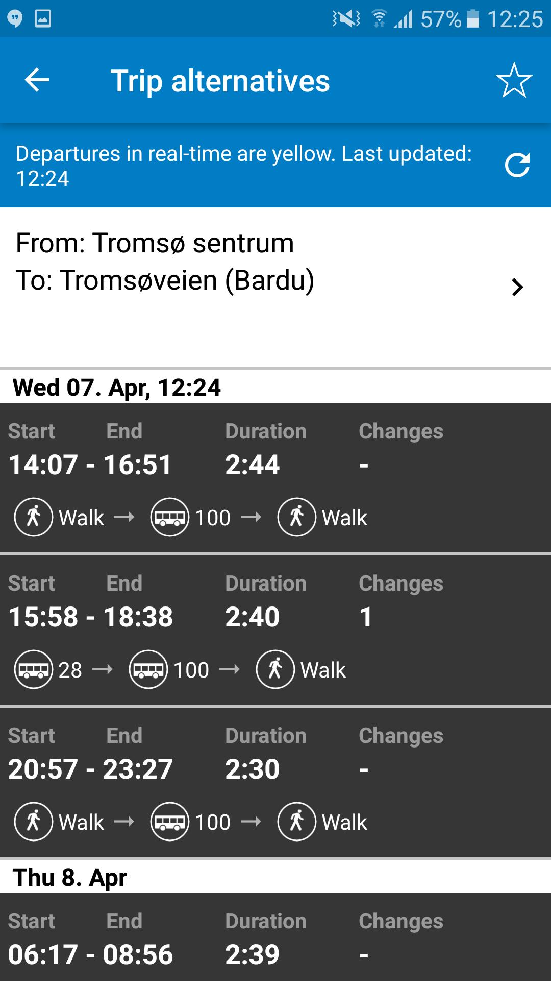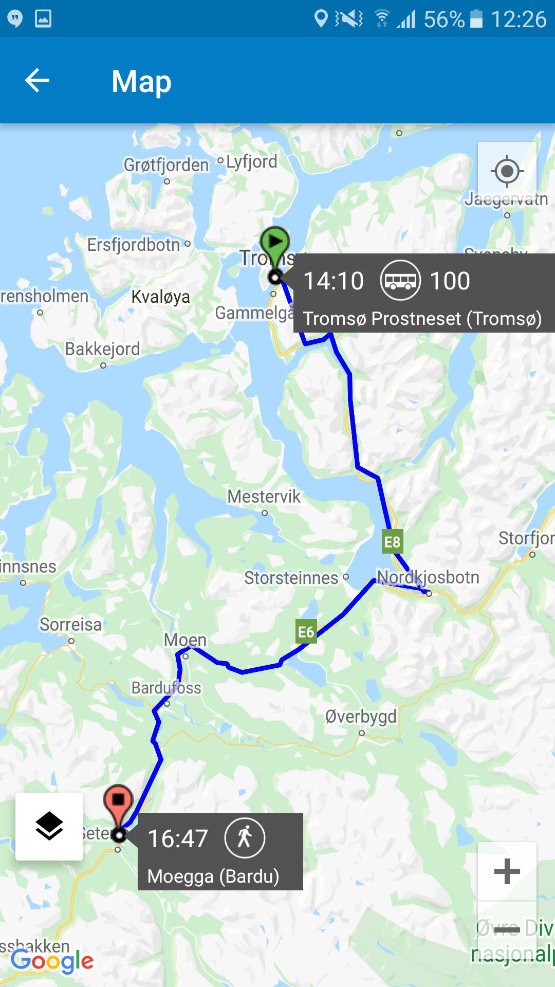 Troms의 버스, 보트 및 페리에서 출발 시간에 대한 정보를 얻을 수 있습니다.
