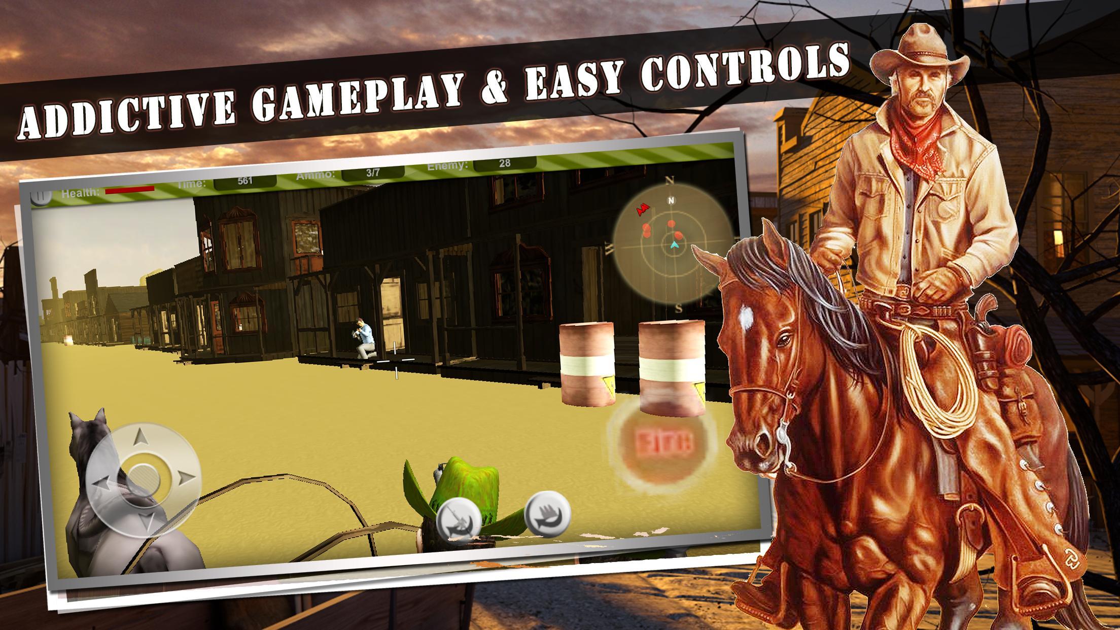 적 갱 보스를 죽이고, 적의 사수를 잡고, 적의 탄약 용품을 파괴하고 화약을 파괴하고, 말을 타는 빠른 속도의 총격전에 참여하십시오.