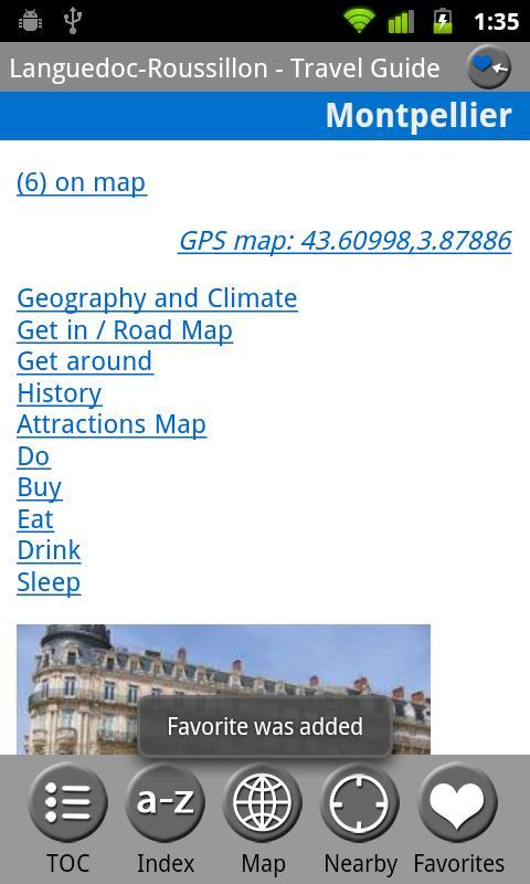 MobileReference Travel Guides provide detailed, practical information about attractions, landmarks, transportation, cultural venues, dining, lodging, history and much more. They are indexed alphabetically and by category, making it easier to access individual articles. Attractions can be viewed on an offline GPS map along with your current location so that you can easily find attractions near you as you explore the city.