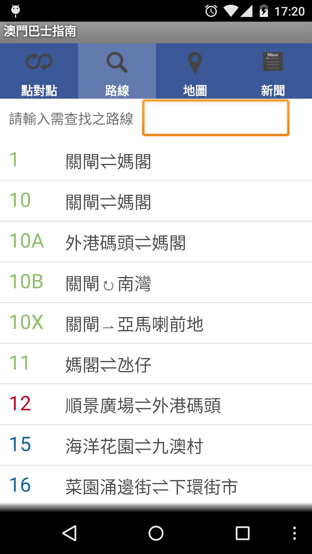 All Macau Bus routes,stops, transfer information, location.