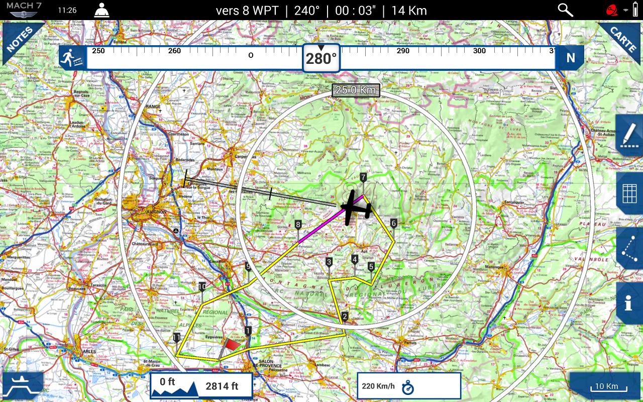 MACH 7 is a new generation software dedicated to pilots of airplanes, ULM, and helicopters. It offers assistance in preparing and monitoring VFR flights in a completely intuitive manner. MACH 7 is divided into two parts: the flight preparation website and the Android flight tracking application.