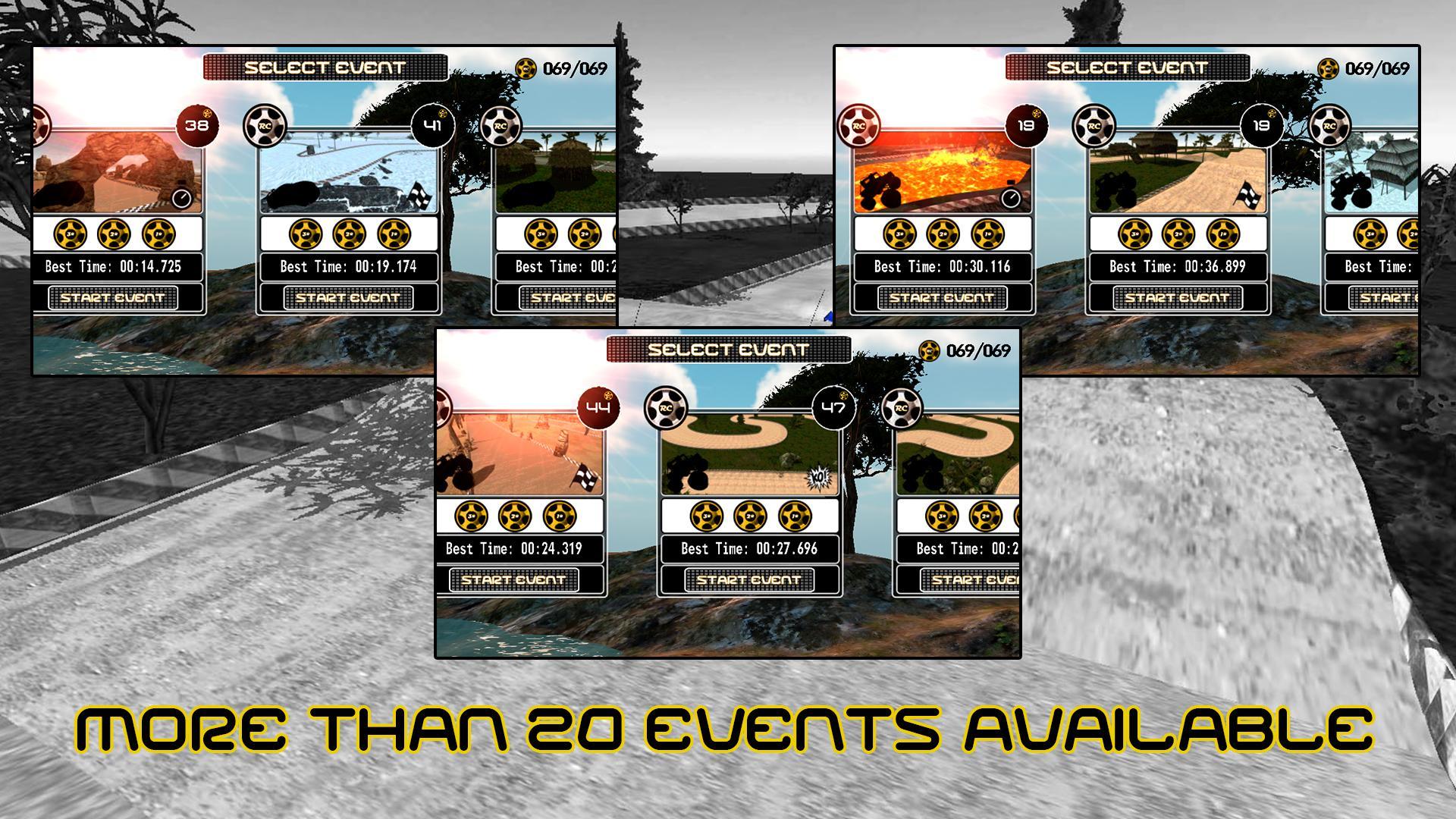 - 4 types of events: Race, Time Trial, and knock out the leader.