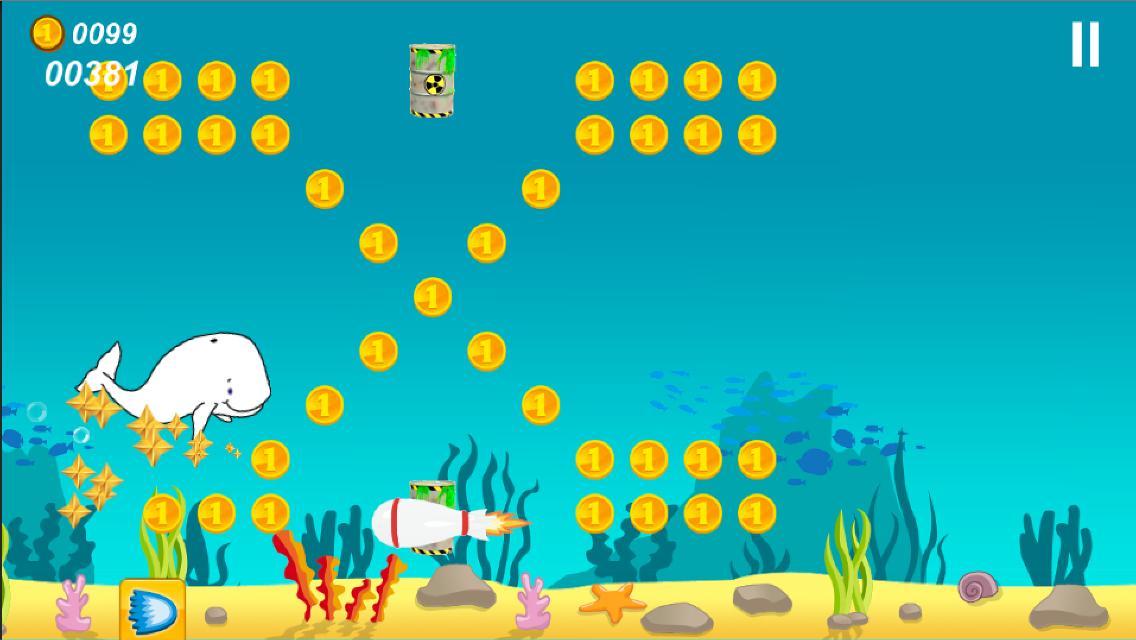 This rare white whale is trying to migrate south but has encountered some obstacles on his journey. Migaloo needs to avoid toxic waste drums, toxic spills, whalers missiles and exploding mines.
