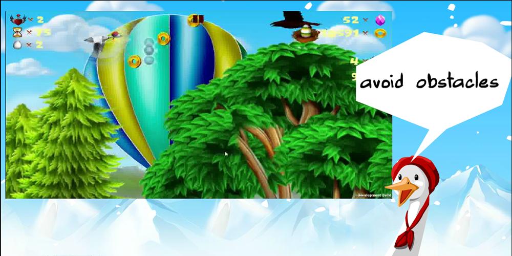 Mommy Goose is an adventure game. The mother goose in her effort to find her eggs, she has to hurdle all the obstacles along her journey. She has to evade the bats, the monkey throwing bananas, the eagle that tries to attack her and more. Her expedition is not easy, because the terrain has plenty of hitches.
