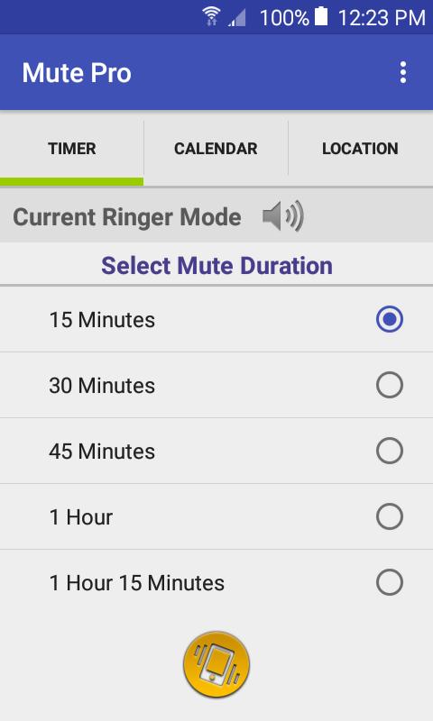 You may also use Mute Pro to mute your phone's ringer right away for a period of time. The phone ringer will be restored to normal volume afterward. This feature is handy when you need to mute the phone's ringer right away but only for a short duration so you will not miss calls after that time passed.