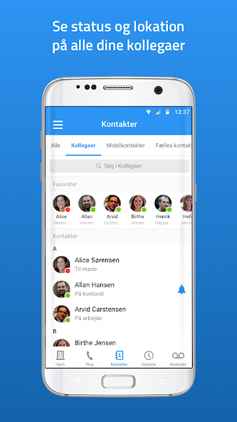An intelligent contact book with the status view of your coworkers and where you can see which coworker is calling, even if they are not in the mobile phone book.