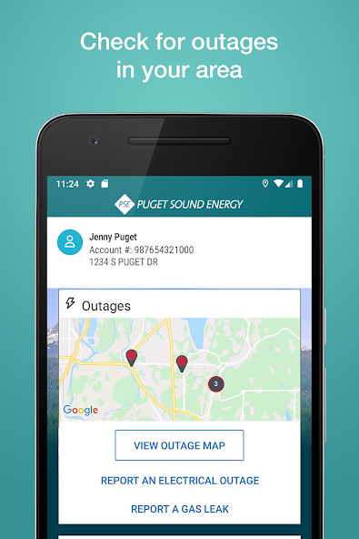 The myPSE app provides easy access to your account when you're on the go. Check your balance and make a payment with just one click. Track & report power outages in your neighborhood and check on restoration times, all in the palm of your hand.