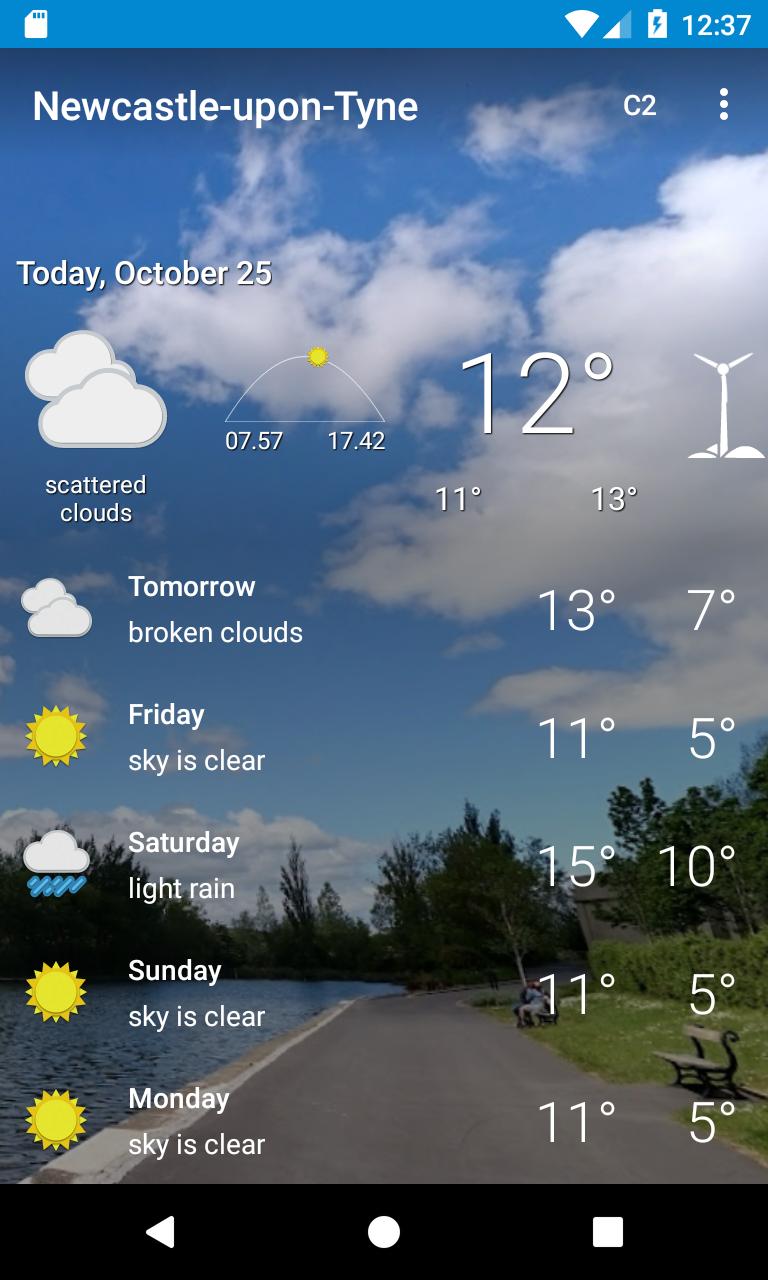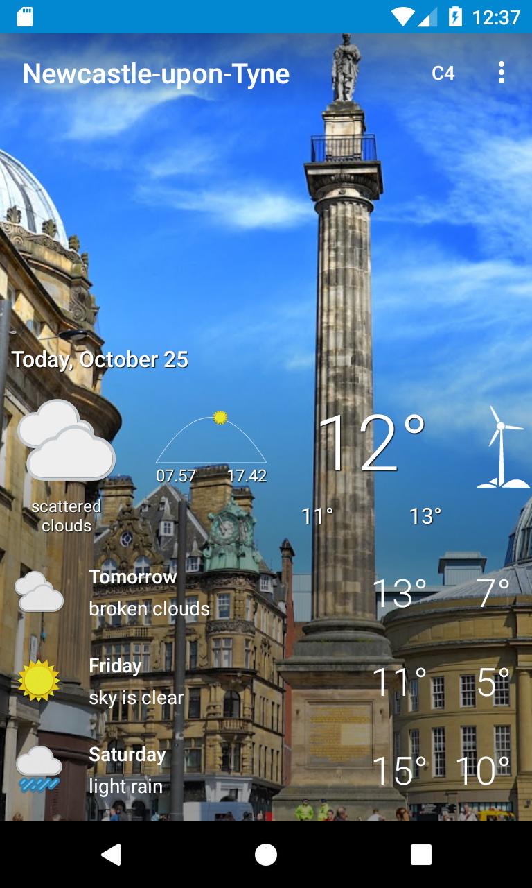 Weather forecast for Newcastle-upon-Tyne including wind speed, pressure,humidity