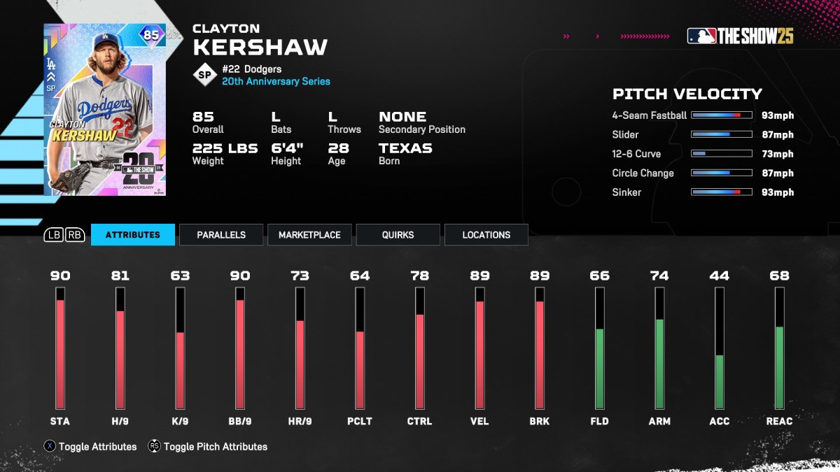 Clayton Kershaw has been one of MLB The Show‘s nastiest pitchers for well over a decade. He returns at the start of MLB The Show 25 as part of the Anniversary Series and has a solid pitch arsenal, including his signature 12-6 Curve. And since he’s not too expensive on the market, budget players can add him to the squad with much pomp and circumstance.
