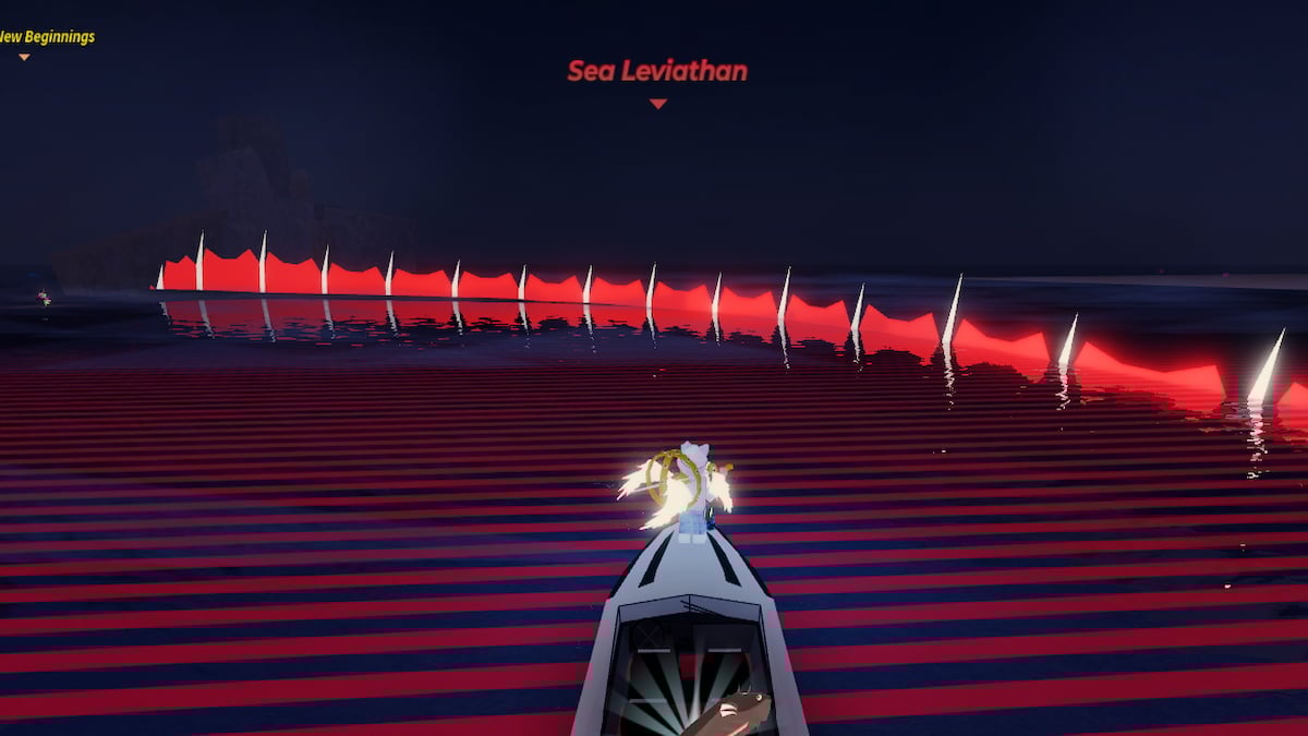 So, what does the Sea Leviathan look like? If a Sea Leviathan has spawned on your server, you will find a large red and white snake-like creature floating around the open areas of the Ocean. From my observation, they usually spawn around the coast of Waveborne and the open areas between Emberreach + Pine Shoals. You can see the above image for a pictorial reference.