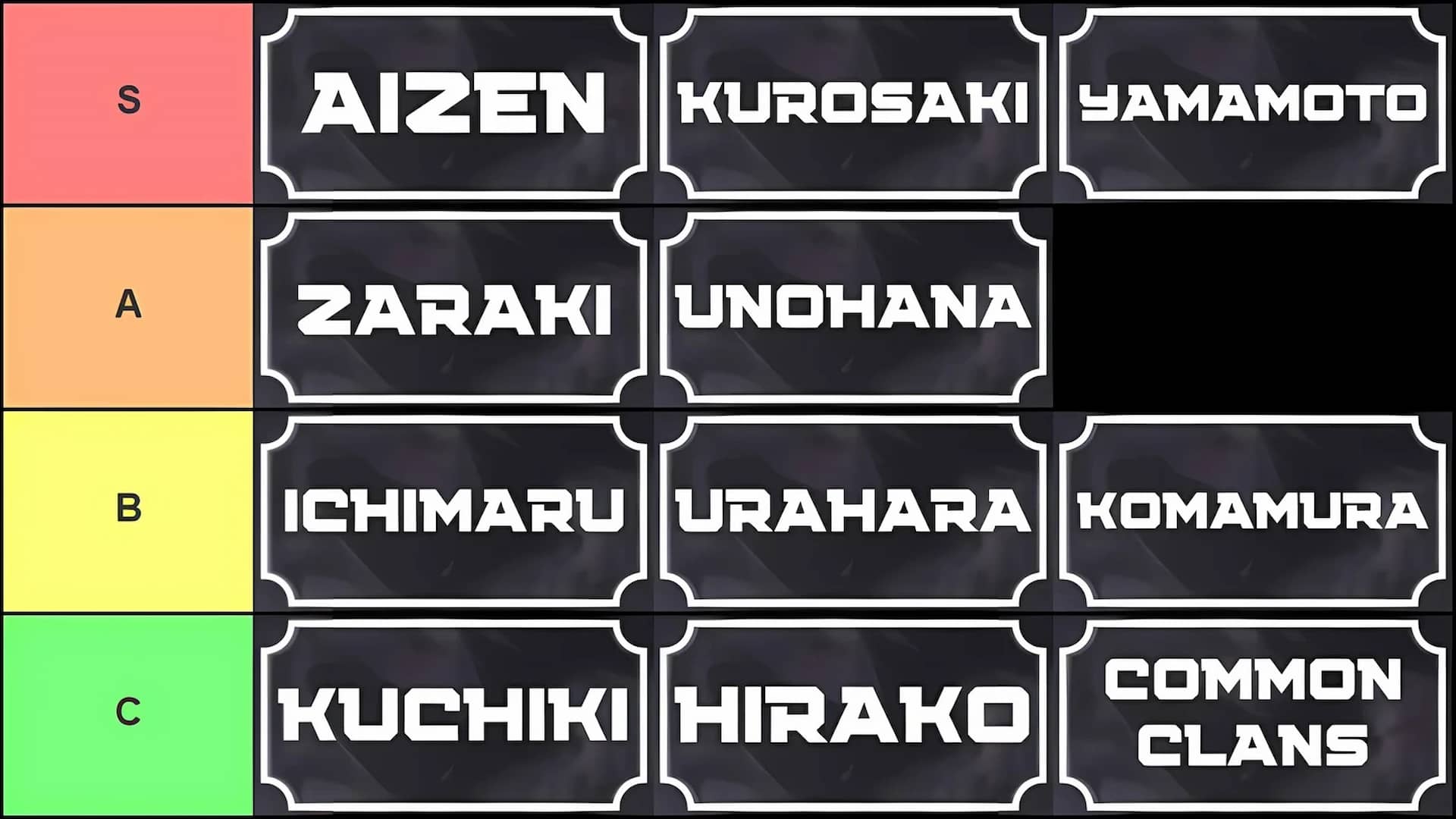 The importance of stats in Paradox is as follows: Posture > Reiatsu > Health. So, the more of the high-priority stats a clan gives you, the better it is. When it comes to Soul Reaper clans in Paradox, the best ones are Aizen, Kurosaki, and Yamamoto, and the tier list above reflects that.