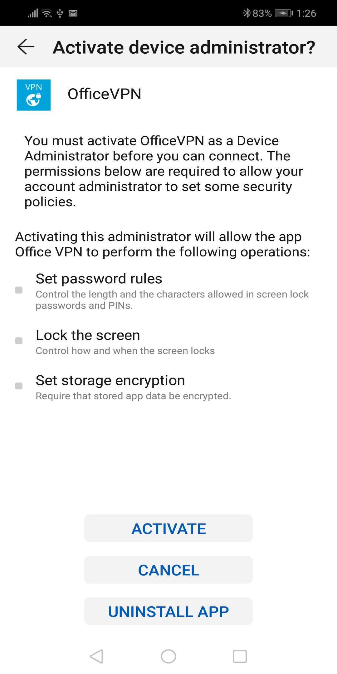 IMPORTANT: The OfficeVPN app requires that your organization has deployed an Asavie-powered VPN solution.